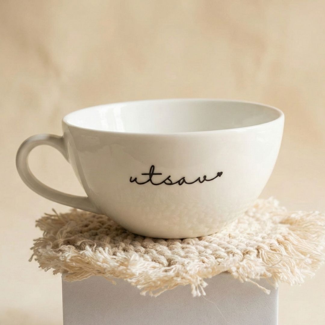 Name/ logo/ quote on one side of the mug